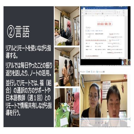・現場でのコミュニケーションのほか、就業時間外でオンラインによる日本 語指導を実施