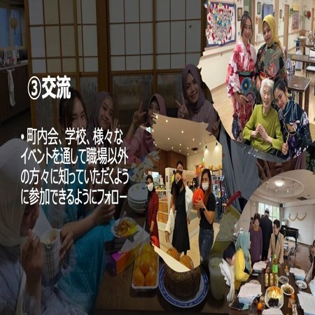 ・町内会や学校など、さまざまなイベントに参加して地域との交流を積極的に行い、仕事場以外での異文化体験を通して日本滞在を有意義なものにしてもらう。