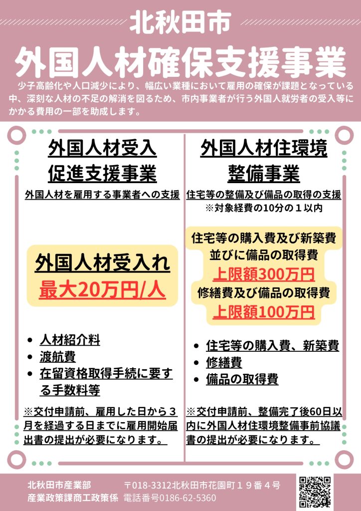 北秋田市外国人材受入推進補助金雇用開始届出書の提出(外国人材を雇用した日から3月を経過する日までに提出してください)